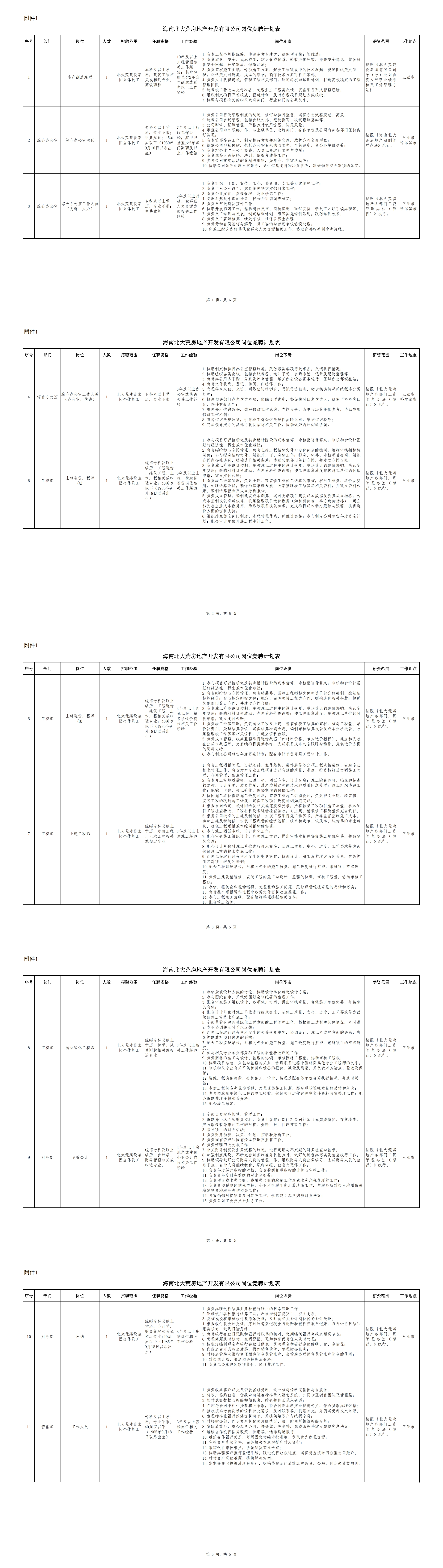 海南北大荒房地产开发有限公司共计11个岗位。竞聘岗位、任职资格、工作经验及岗位职责等信息,详见《岗位竞聘计划表》(附件1)。